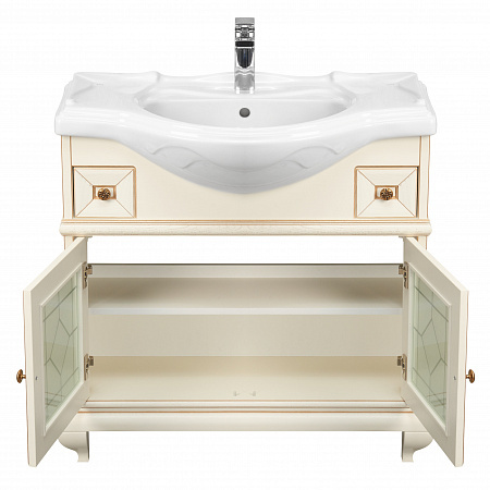 Комплект мебели Aquaton Беатриче 85 слоновая кость с патиной, раковина Aquaton белый мрамор - цена 70779 руб. Оформить заказ и купить мебель для ванной Aquaton Беатриче 85 слоновая кость с патиной, раковина Aquaton белый мрамор в Москве в нашем интернет магазине можно по тел 8 (919) 991-95-00 или добавив товар в корзину.
