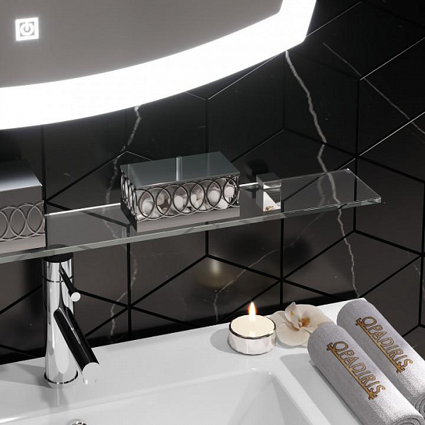 Мебель Риголетто прекрасно дополняет дизайнерское зеркало со светодиодной подсветкой и сенсорным датчиком включения.