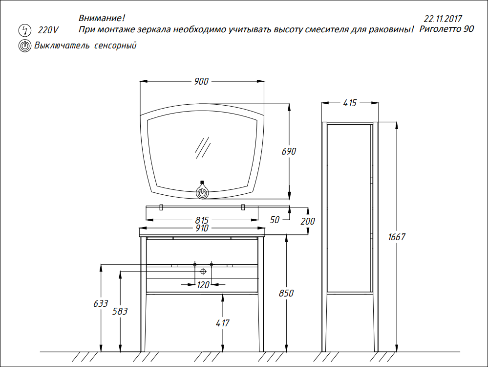 Внимание! Мебель из коллекции Риголетто подвесная! Требуется крепеж к стене, ножки являются декоративными!