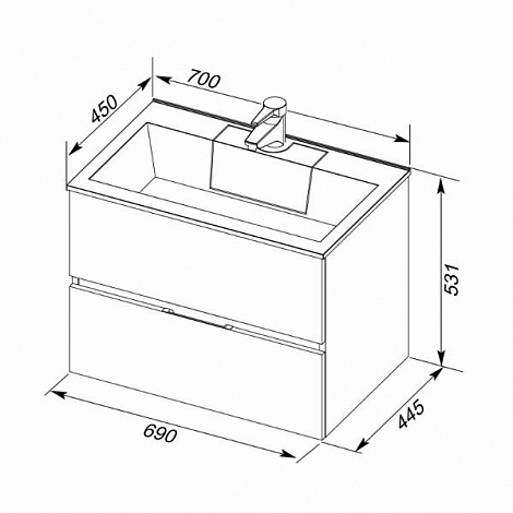 Тумба под раковину Астра-Форм Соло-70 с 2 ящиками