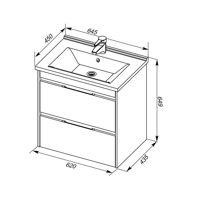 раковина под тумбу, габариты: 65x 15x 45см, раковина белый