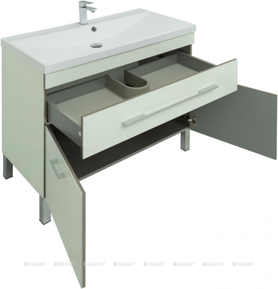 Тумба напольная серии Верона с покрытием из качественного акрила — такая отделка придает эффектности внешнему виду и повышает уровень влагозащиты.