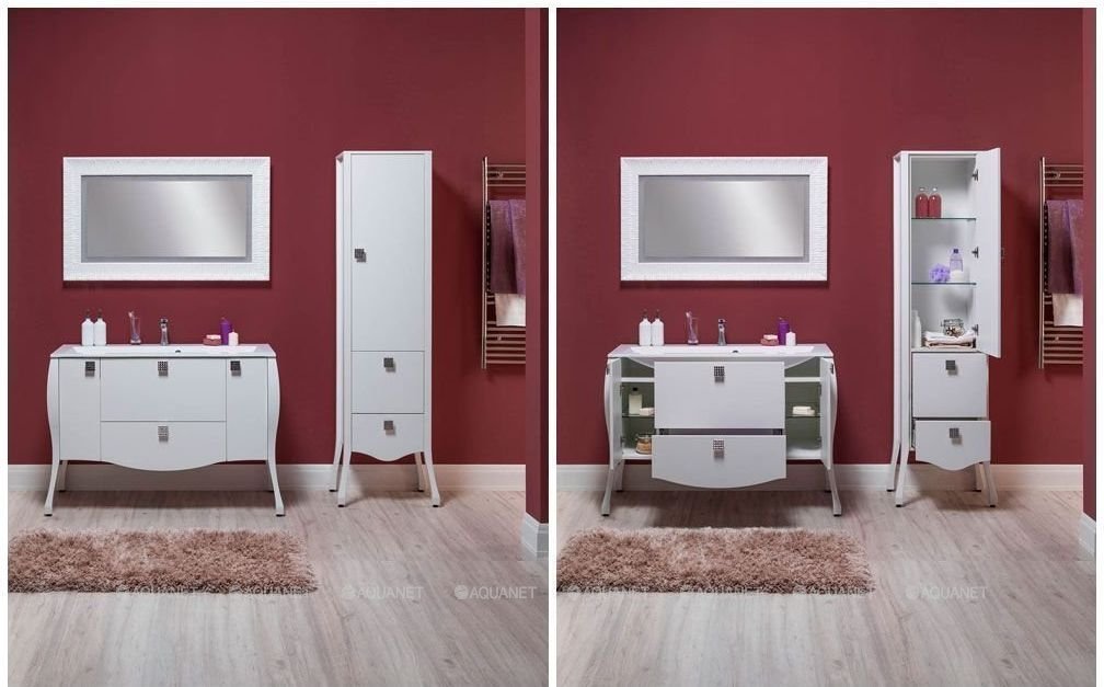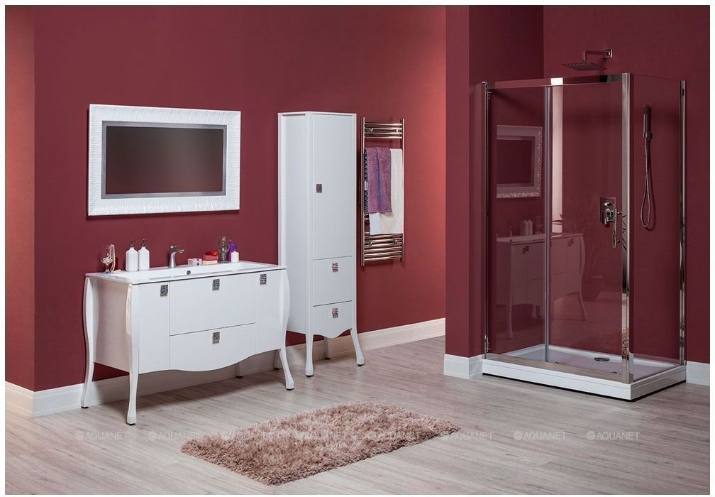 Массивная багетная рама придает внушительности, а скошенный фацет делает образ более утонченным и изысканным, создавая целостный и гармоничный вид. Такое зеркало с антизапотевателем (обогревом) и встроенной подсветкой станет отличной парой не только к мебельному гарнитуру Мадонна, но и к другой мебели для ванной в стиле «модерн».