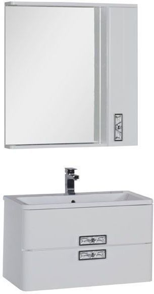 Четкие, правильные формы и лаконичный белый цвет подчеркивают причудливость оригинальных металлических ручек, а отсутствие ножек тумбы облегчает уборку и создает устойчивое впечатление, что мебель"парит" в воздухе.