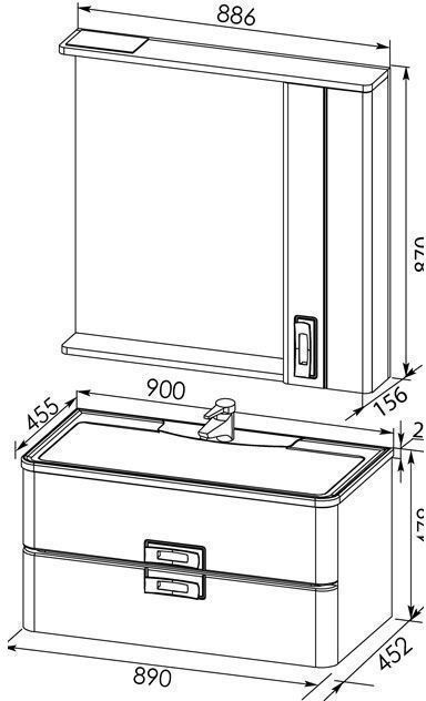 Удобная полка рядом с зеркалом предназначена для мелочей, которые всегда должны быть под рукой, а в большой вместительный шкаф (приобретается отдельно) можно убрать крупные вещи, например, полотенца. Выкатные ящики под раковиной снабжены системой доводчиков для более плавного хода.