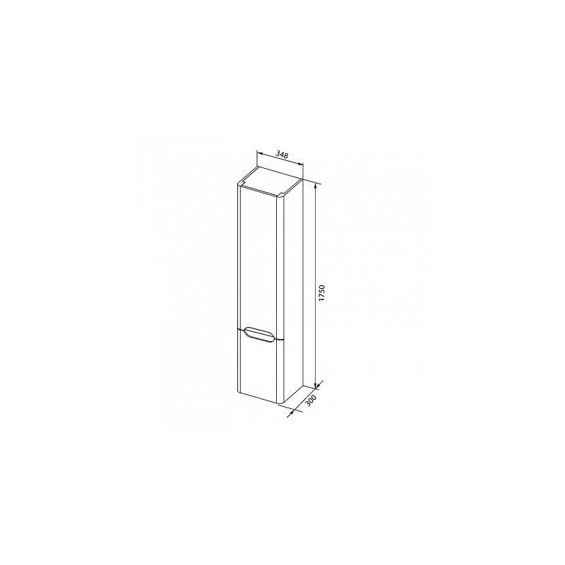 Глянцевые поверхности выглядят безупречно. Конструкция внутреннего устройства шкафа шириной 35 см и высотой 175 см предельно проста: две зоны хранения, скрытые каждая за своей дверкой, причем, полки верхнего отделения, а их три, больше по высоте, чем две - в нижнем отсеке шкафчика, что позволит грамотно распределить вещи для хранения в зависимости от их габаритов.
