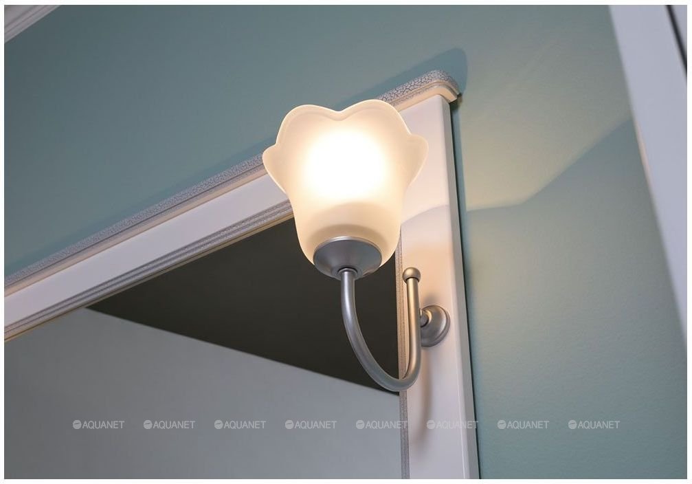Элегантные бра в виде бутонов цветов создают мягкое освещение, только их необходимо заказать. Aquanet применяет простую и надежную систему подвеса зеркал, положение которых удобно регулировать на монтажной пластине по горизонтали и вертикали.