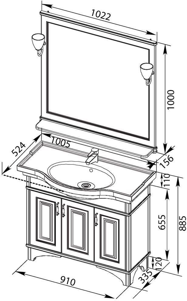 тумба под раковину, габариты: 101x 89x 52см, корпус белый