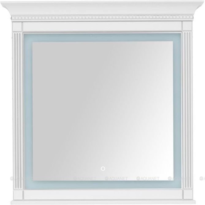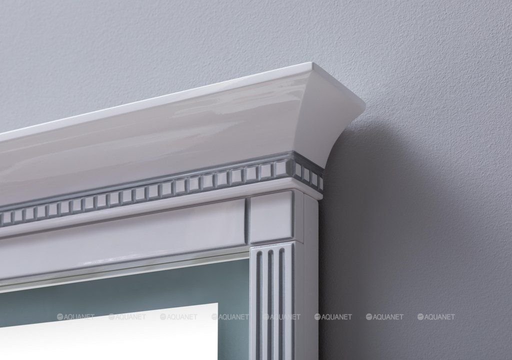 Зеркало Aquanet Селена 105 белый/серебро с эффектным патинированием серебром, с живописными украшениями в виде искусной фрезеровки и подобием капители, венчающих верхнюю часть изделия, как на античных колоннах, впечатляет с первого взгляда. Зеркало имеет встроенную LED-подсветку по периметру с сенсорным выключателем. Рамка шириной 105 см, в которую обрамлено зеркало, снабжена декоративными элементами и имеет небольшую полочку.