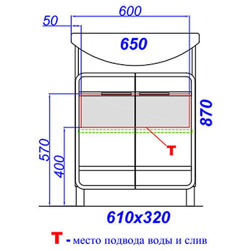 Напольная тумба с умывальник Лагуна 650,две дверцы.