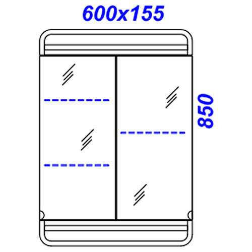 Зеркальный шкаф с двумя дверцами, открывающимися к центру.