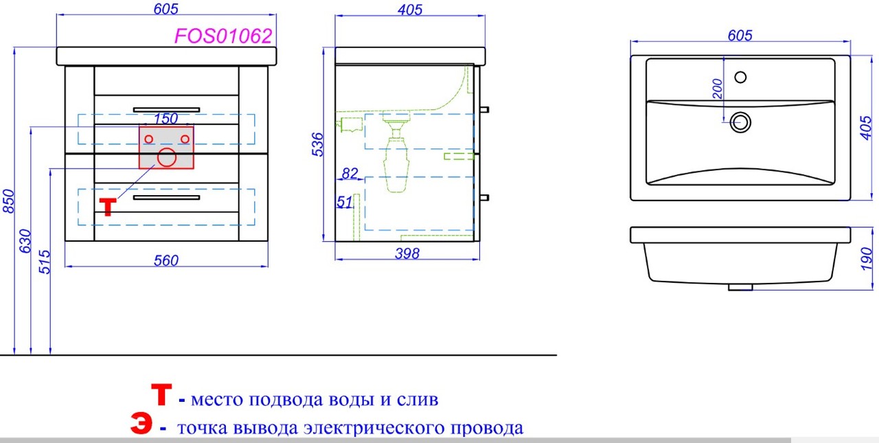 Подвесная тумба для раковины Фостер 600, два ящика.