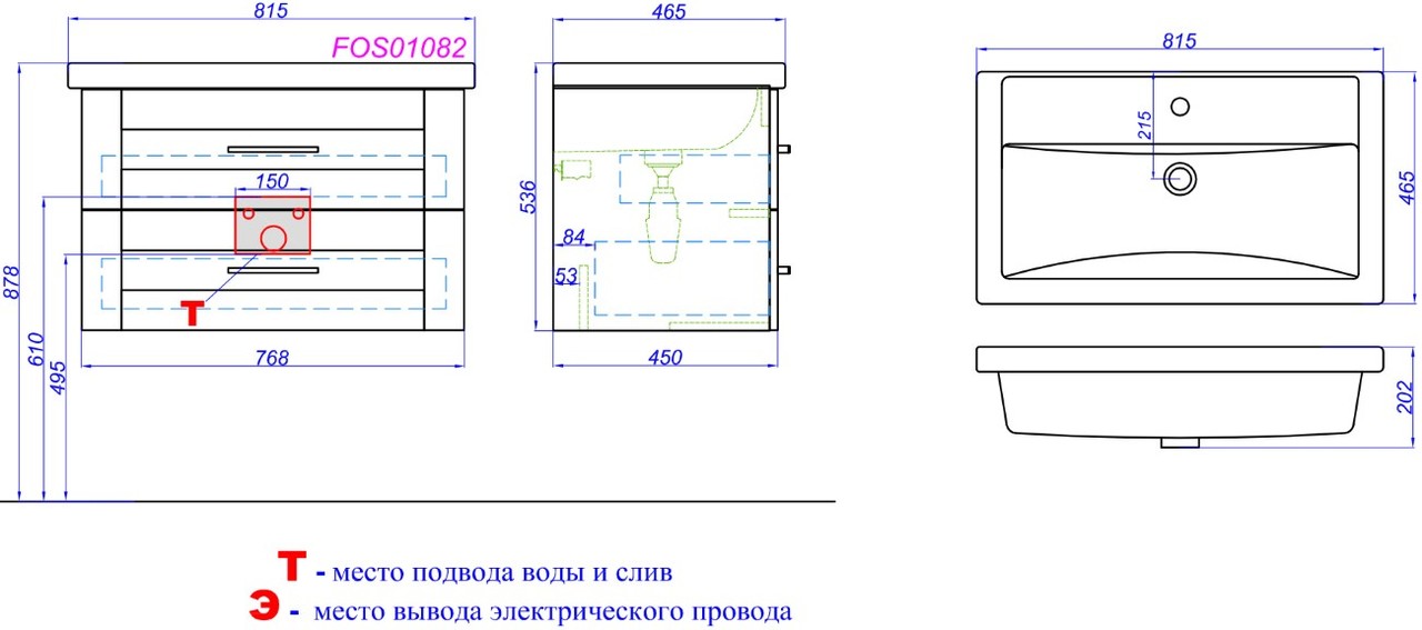 Подвесная тумба для умывальника Фостер 800, два ящика.
