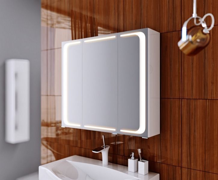 Зеркальный шкаф-трельяж со светодиодной подсветкой по периметру, а также внутренним блоком выключатель-розетка.