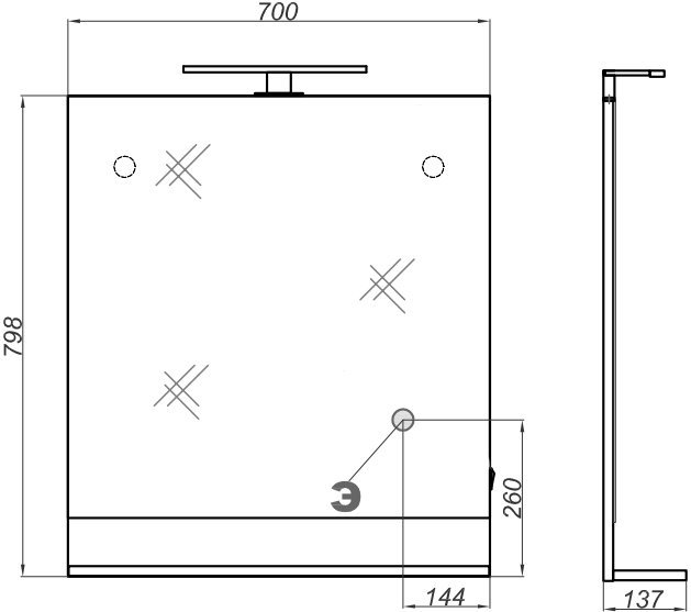 Зеркало 70см с полочкой, светодиодным светильником и выключателем.