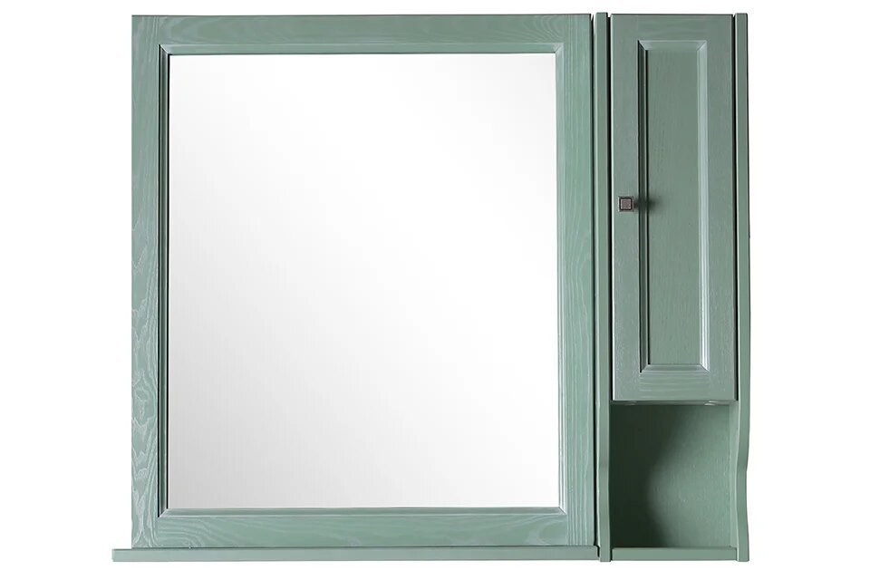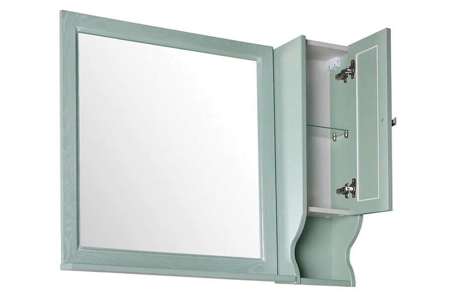Навесной шкафчик с дверцей и полочками гармонично дополнит зеркало и придаст комплекту завершенный вид.