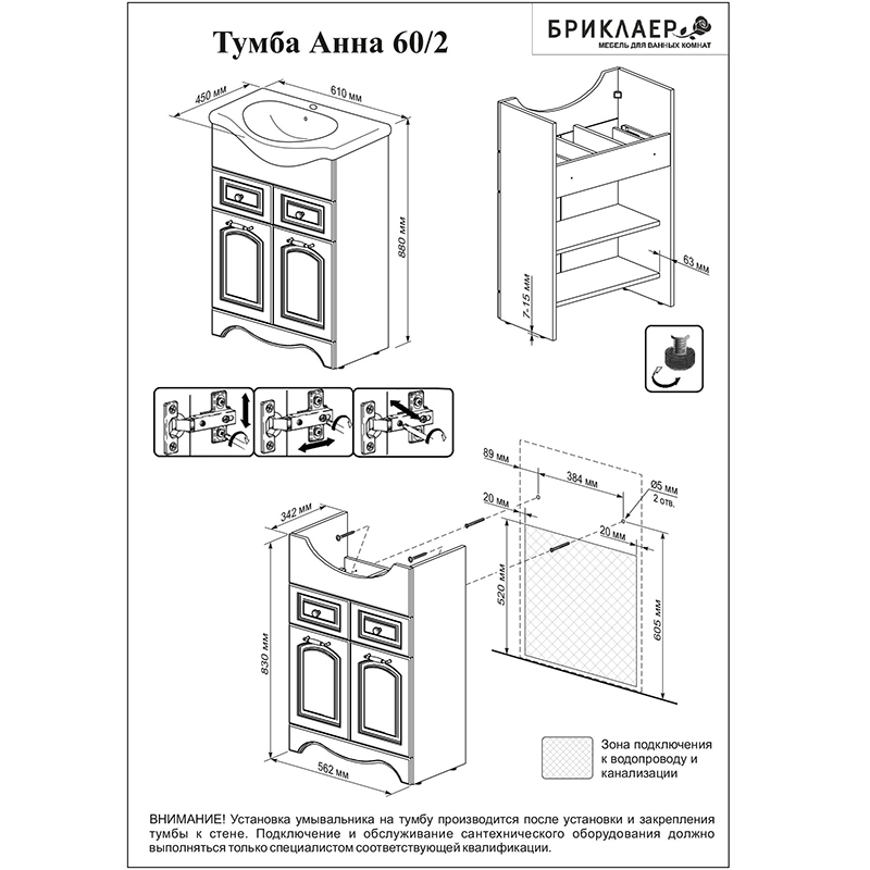 Тумба под раковину Бриклаер Анна 60 белая - цена 26400 руб. Оформить заказ и купить компонент Бриклаер Анна 60 белая в Москве в нашем интернет магазине можно по тел 8 (919) 991-95-00 или добавив товар в корзину.