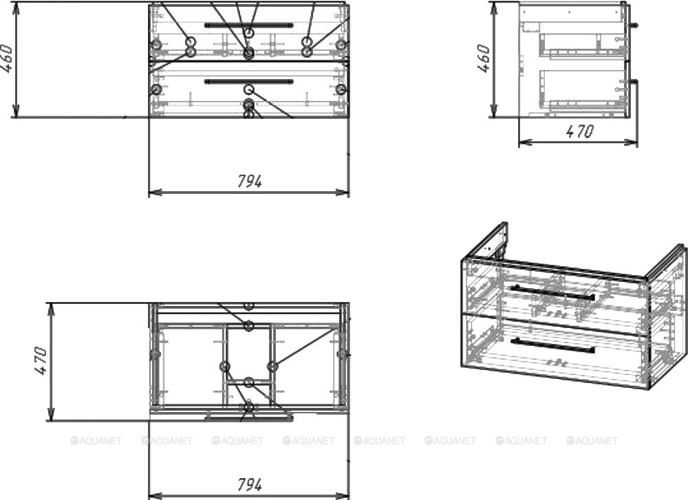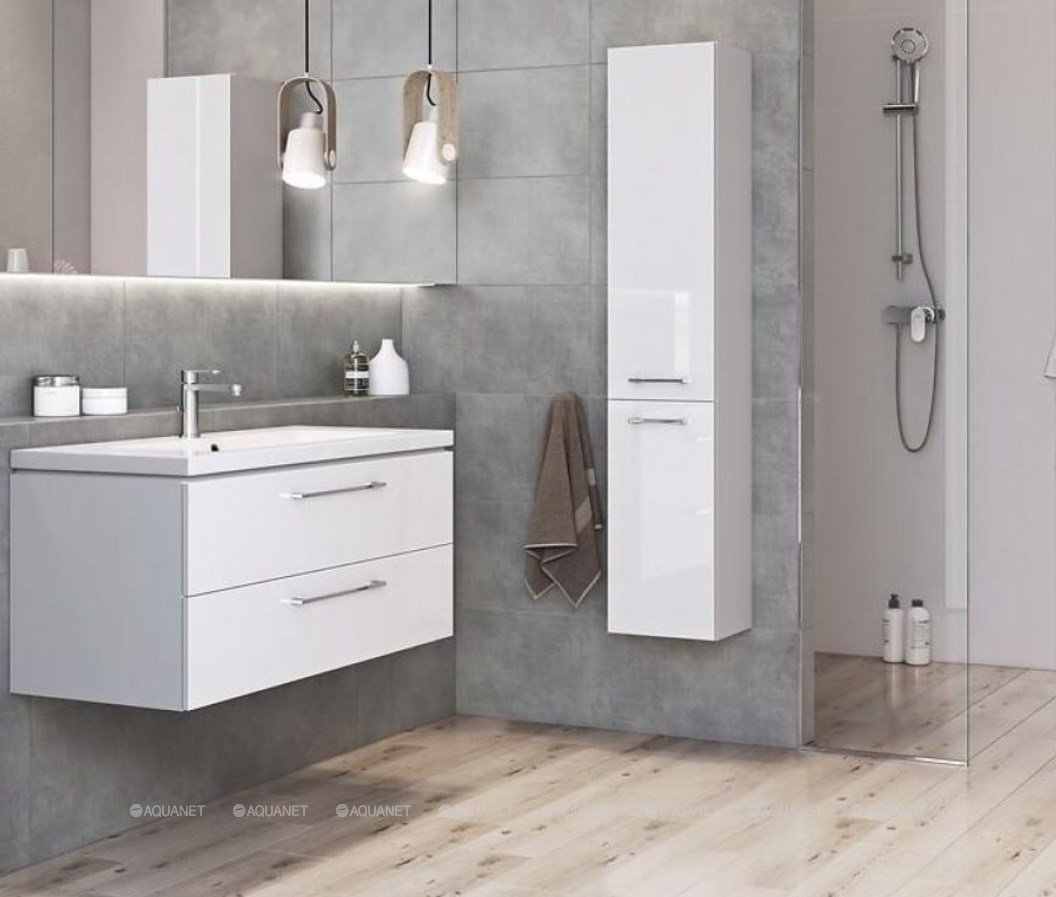 Тумба под раковину Aquanet Тиволи 80 с 2 ящиками, 1 дверцей, белый глянец (180055)