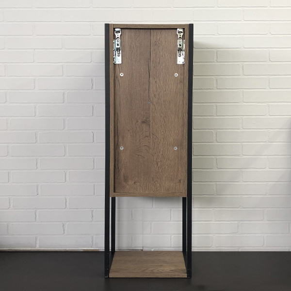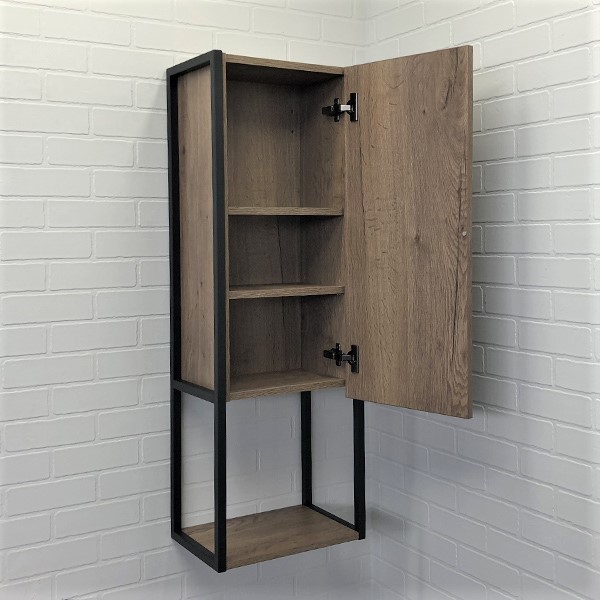 Шкаф-колонна Лиссабон 40 Варианты цвета: Дуб темный Материал: влагостойкое ЛДСП Варианты цвета каркаса: черный муар Материал каркаса: сталь Габариты ШхВхГ: 380*1100*260 мм Подвесной шкаф - со створкой и пространством для открытого хранения. Фасад и корпус из влагостойкого ЛДСП. В основе металлическая рама из окрашенного в черный муар металла. Петли створки с механизмами плавного закрывания. Створка может быть подвешена с правым или левым расположением петель.