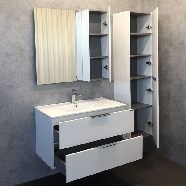 За створками по две горизонтальные полки. Колонна универсальна, дверцы можно подвесить как в правом, так и в левом варианте.