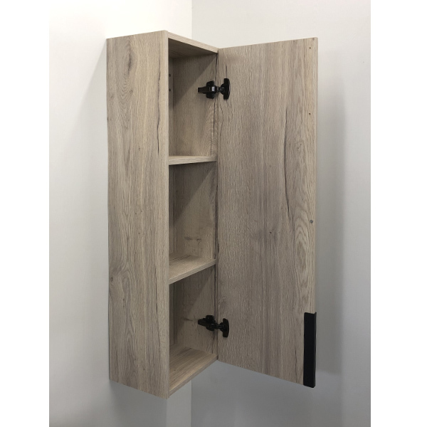 Полуколонна подвесная Бонн 35 Варианты цвета: Дуб дымчатый Материал: влагостойкое ЛДСП Габариты ШхВхГ: 340*1100*240 Подвесная шкаф-колонна с одной распашной дверью. Створка оборудована петлями с системой плавного закрывания. За створкой 2 горизонтальные полки. Полуколонна универсальна, может быть подвешена в правом и левом варианте.