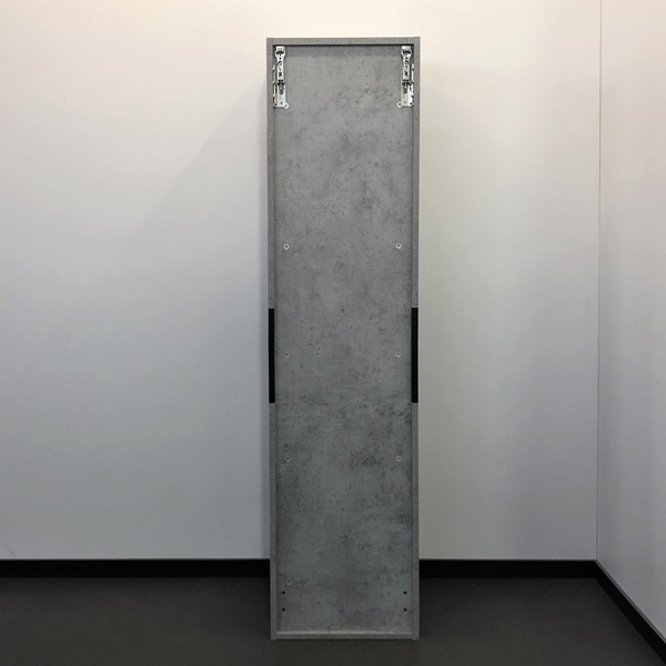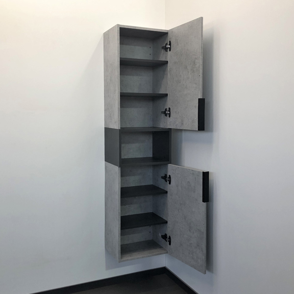 Шкаф-колонна Франкфурт 40 Варианты цвета: Бетон светлый Материал: влагостойкое ЛДСП Габариты ШхВхГ: 400*1600*320 мм Подвесная шкаф колонна с двумя створками и пространством для открытого хранения. Створки оснащены петлями с плавным закрыванием и черными матовыми алюминиевыми ручками. За створками по две регулируемые по высоте полки. Шкаф-колонна универсальна, может быть подвешена переворачиванием в правом и левом варианте.