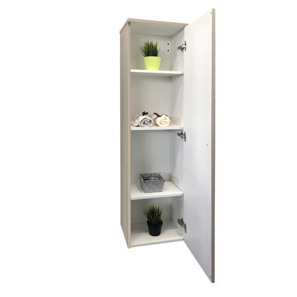 Шкаф-колонна Кремона 40 Варианты цвета: латте Материал корпуса: ВЛДСП Материал фасадов: МДФ Габариты ШхВхГ: 375*1480*315 мм Подвесная шкаф колонна с одной створкой. Створка оснащена петлями с плавным закрыванием и хромированной ручкой кнопкой. За створкой полки. Шкаф-колонна универсальна, створку можно подвесить с петлями справа или слева.