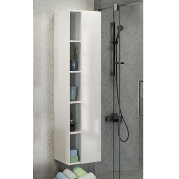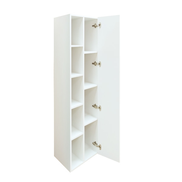 Шкаф-колонна Милан 40 (правая) Варианты цвета: Белый глянец Материал: влагостойкое ЛДСП Габариты ШхВхГ: 400*1600*320 Подвесная шкаф-колонна с одной распашной дверью и пространством для открытого хранения. Створка оборудована петлями с системой плавного закрывания. За створкой три горизонтальные полки.