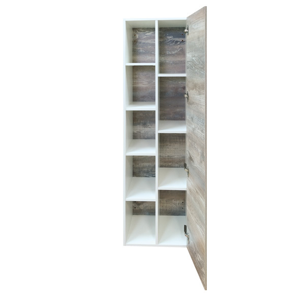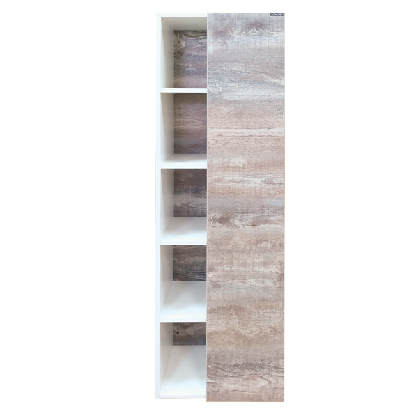Шкаф-колонна Турин 45 (правая) Варианты цвета: Дуб бежевый/Белый матовый Материал: влагостойкое ЛДСП Габариты ШхВхГ: 450*1600*320 Подвесная шкаф-колонна с одной распашной дверью и пространством для открытого хранения. Створка оборудована петлями с системой плавного закрывания. За створкой три горизонтальные полки.