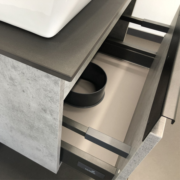 Тумба-умывальник Эдинбург 60 Варианты цвета корпуса и фасада: Бетон светлый Материал: влагостойкое ЛДСП Габариты (ШхВхГ): 600*525*400 мм Комплектация: Comforty 9055RA-50, устанавливаемыми на столешницу из керамогранита. Тумба-умывальник в современном стиле с глубоким ящиком. Тумба укомплектована черной матовой ручкой профилем и системой плавного закрывания ящика. Тумба подготовлена для подключения водоснабжения снизу.