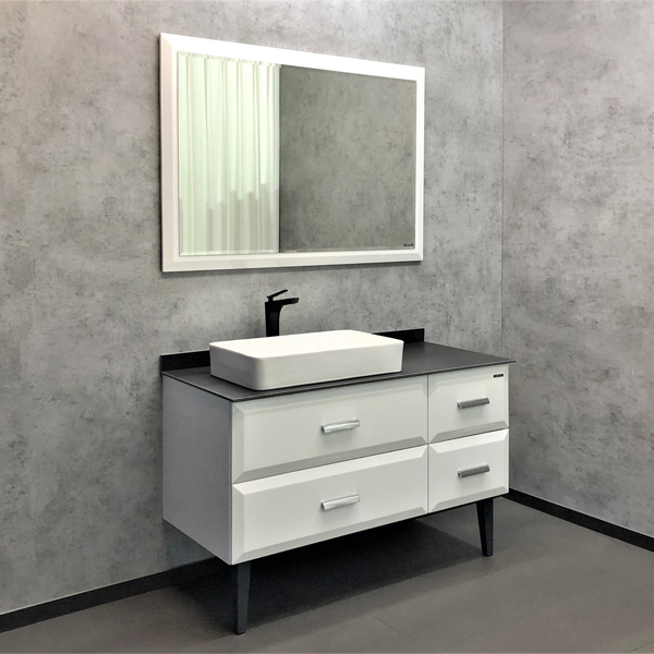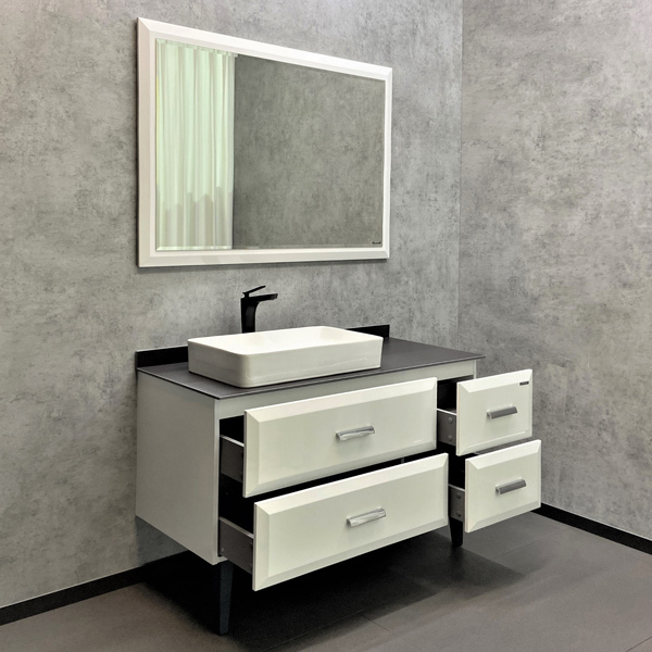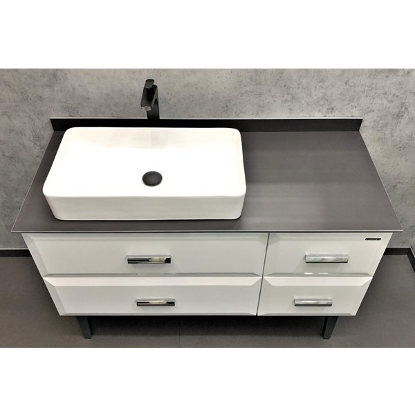 Тумба-умывальник Империя 120 Варианты цвета корпуса и фасадов: Белый глянец Материал корпуса: влагостойкое ЛДСП Материал фасада: МДФ Габариты (ШхВхГ): 1200*890*520 мм Комплектация: столешница и плинтус из серого или антрацитового керамогранита, накладная раковина Comforty 78189 Подвесная тумба с четырьмя выдвижными ящиками оснащенными системой плавного закрывания. Оригинальные эргономичные металлические ручки. Фасады окрашены белой глянцевой эмалью. Две декоративные ножки из массива натурального дерева.