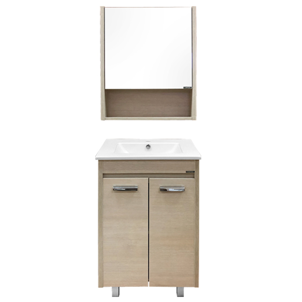 Тумба-умывальник Марио 60 Варианты цвета: Сосна Лоредо Материал корпуса и фасада: влагостойкое ЛДСП Габариты (ШхВхГ): 610*855*470 мм Комплектация: раковина Quadro 60 (санфарфор)