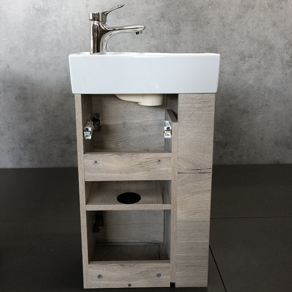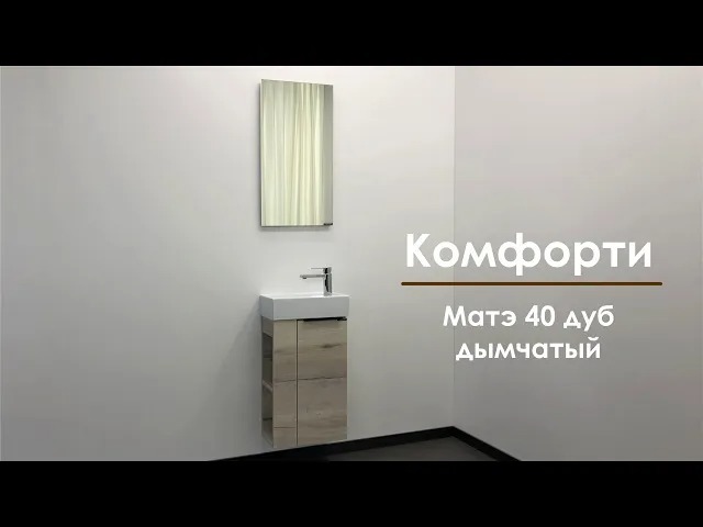 Тумба-умывальник Матэ 40 Варианты цвета корпуса и фасада: дуб дымчатый Материал корпуса: влагостойкая ЛДСП Габариты (ШхВхГ): 400*700*220 мм Комплектация: накладная раковина Cersanit Crea 40 Компактная подвесная тумба с распашной дверцей. Петли оснащены системой плавного закрывания. За дверцей одна горизонтальная полка. Корпус и фасад с тактильным эффектом натуральной древесины. В комплекте асимметричная раковина с отверстием под смеситель справа. Тумба подготовлена для подключения водоснабжения снизу.