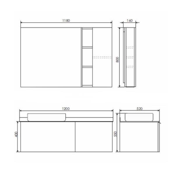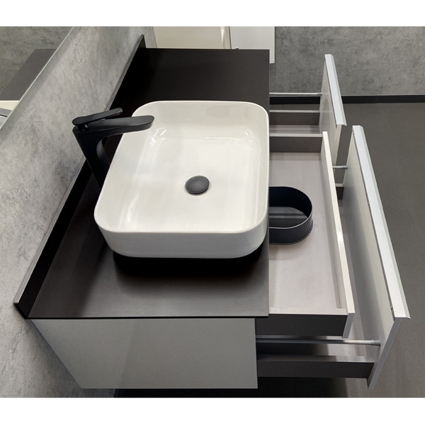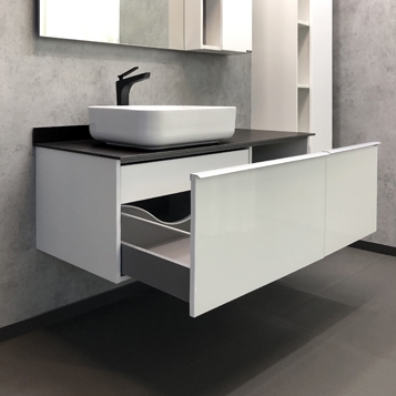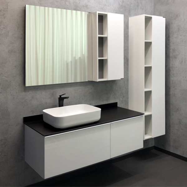 COMFORTY. Тумба-умывальник "Милан-120" белый глянец с антрацитовой столешницей, с раковиной COMFORTY T-Y9378