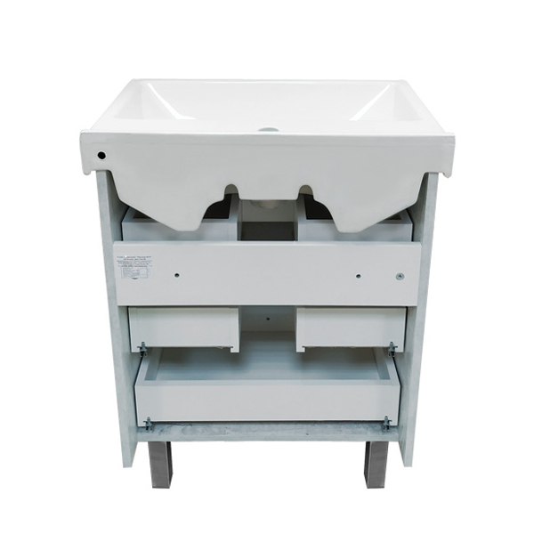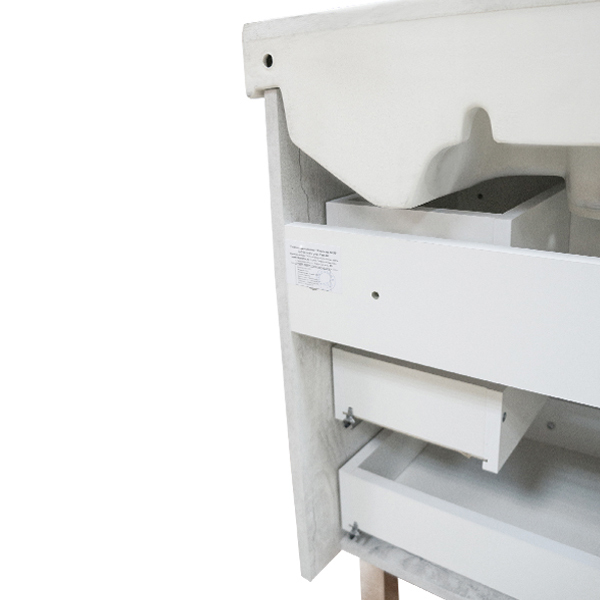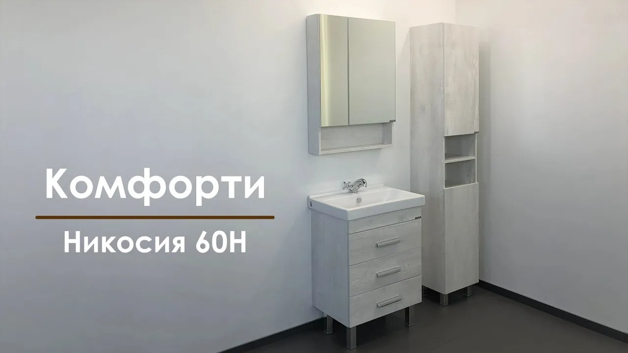 Тумба-умывальник Никосия 60Н Варианты цвета корпуса и фасадов: Дуб белый Материал корпуса и фасадов: влагостойкое ЛДСП Габариты (ШхВхГ): 600*860*400 мм Комплектация: раковина Fest 60 (санитарный фарфор) Напольная тумба с тремя выдвижными ящиками оснащенными системой плавного закрывания. Оригинальные эргономичные металлические ручки.