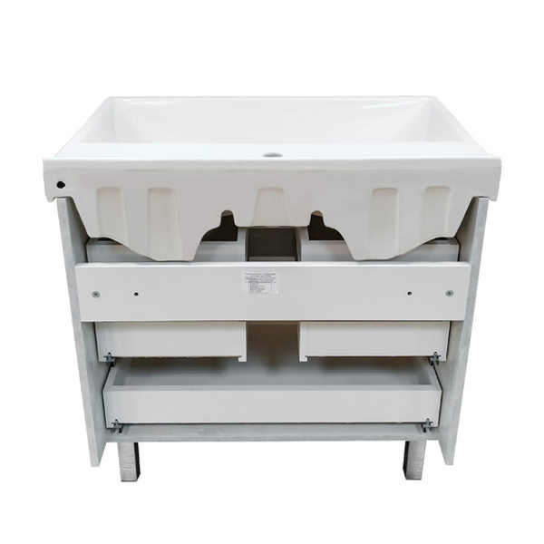 Тумба-умывальник Никосия 80Н Варианты цвета корпуса и фасадов: Дуб белый Материал корпуса и фасадов: влагостойкое ЛДСП Габариты (ШхВхГ): 800*860*450 мм Комплектация: раковина Fest 80 (санитарный фарфор) Напольная тумба с тремя выдвижными ящиками оснащенными системой плавного закрывания. Оригинальные эргономичные металлические ручки.