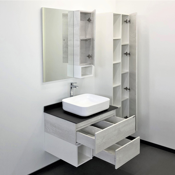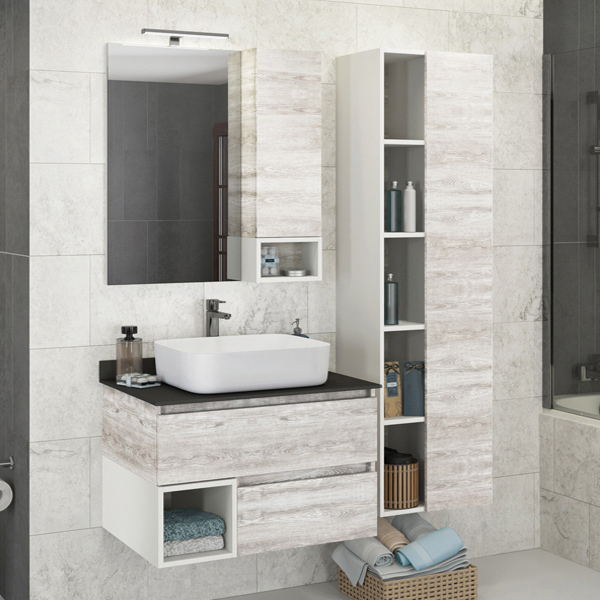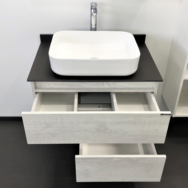 Тумба-умывальник Прага 75 Варианты цвета корпуса: Дуб Белый Материал корпуса: влагостойкое ЛДСП Цвет фасада: Дуб Белый Материал фасада: влагостойкое ЛДСП Габариты (ШхВхГ): 750*630*520 мм Комплектация: накладная раковина Comforty T-Y9378, столешница из керамогранита