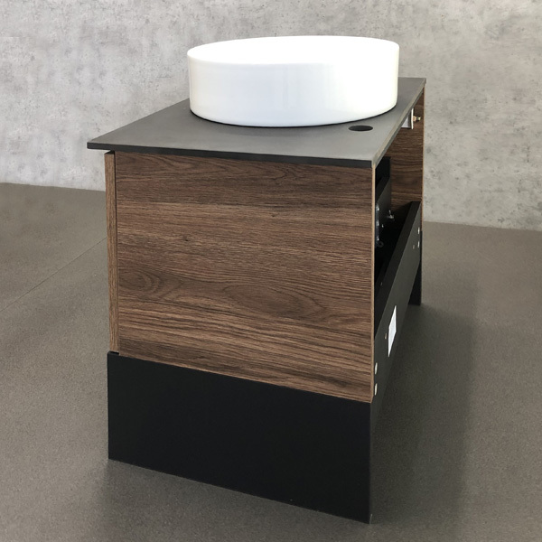 Тумба-умывальник Штутгарт 60 Варианты цвета корпуса: Дуб темно-коричневый Материал корпуса: влагостойкое ЛДСП Цвет фасада: Дуб темно-коричневый Материал фасада: влагостойкое ЛДСП Габариты (ШхВхГ): 600*645*400 мм Комплектация: раковинаComforty 9111 Тумба-умывальник в современном стиле с выкатным ящиком и пространством для открытого хранения. Тумба укомплектована черной матовой алюминиевой ручкой и системой плавного закрывания ящика. Тумба подготовлена для подключения водоснабжения снизу.