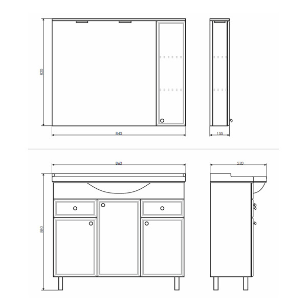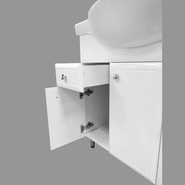 Тумба-умывальник Сочи 85 Варианты цвета корпуса: Белый глянец Материал корпуса: влагостойкое ЛДСП Цвет фасада: Белый глянец Материал фасада: Материфл фасада:МДФ Габариты (ШхВхГ): 860*880*520 мм Комплектация: раковина Сантек Сенеж