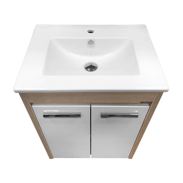 Тумба-умывальник Тулуза 60D Варианты цвета корпуса: Сосна Лоредо Материал корпуса: ЛДСП Цвет фасада створок: Белый глянец Материал фасада: Материфл фасада:МДФ Габариты (ШхВхГ): 600*850*450 мм Комплектация: раковина Quadro 60 (санфарфор)