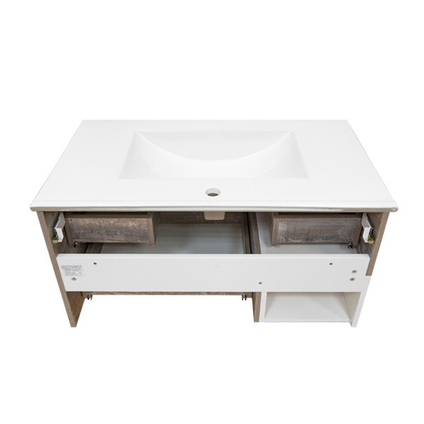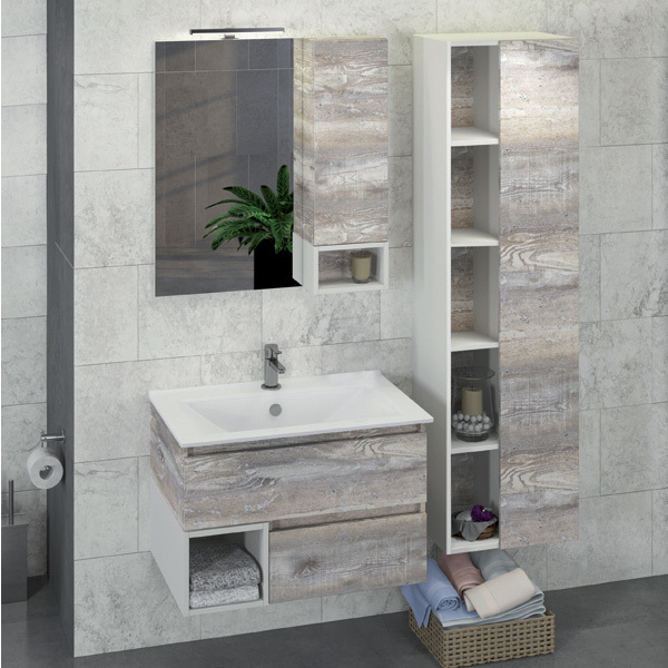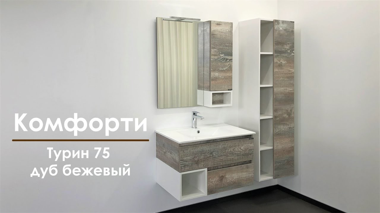 Тумба-умывальник Турин 75 Варианты цвета корпуса: Дуб бежевый/Белый матовый Материал корпуса: влагостойкое ЛДСП Цвет фасада: Дуб бежевый Материал фасада: влагостойкое ЛДСП Габариты (ШхВхГ): 750*495*470 мм Комплектация: накладная раковина Comforty 75E. Подвесная тумба с двумя ящиками оборудованными системой плавного закрывания и пространством для открытого хранения.