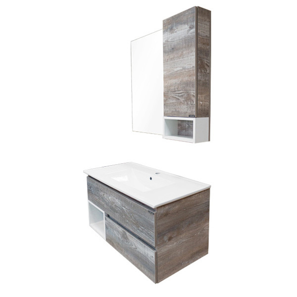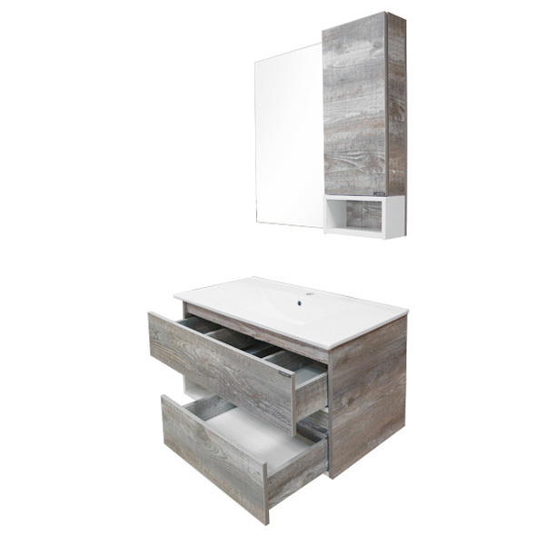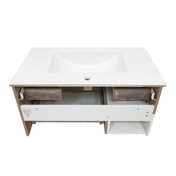 Тумба-умывальник Турин 90 Варианты цвета корпуса: Дуб бежевый/Белый матовый Материал корпуса: влагостойкое ЛДСП Цвет фасада: Дуб бежевый Материал фасада: влагостойкое ЛДСП Габариты (ШхВхГ): 905*495*470 мм Комплектация: накладная раковина Comforty 90E. Подвесная тумба с двумя ящиками оборудованными системой плавного закрывания и пространством для открытого хранения.