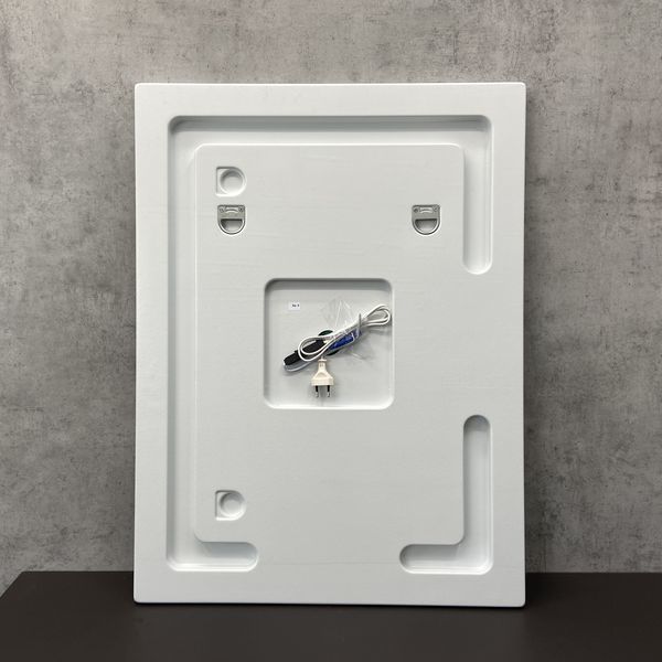 Зеркало Гиацинт 60 Габариты (ШхВхГ): 600*800*30 мм Зеркало оснащено встроенным светодиодным светильником и сенсорной кнопкой включения подсветки. Высококачественное зеркальное полотно с амальгамой на основе серебра. Зеркало для ванной комнаты с проводом длиной 1,3 м и вилкой подключения в сеть 220В