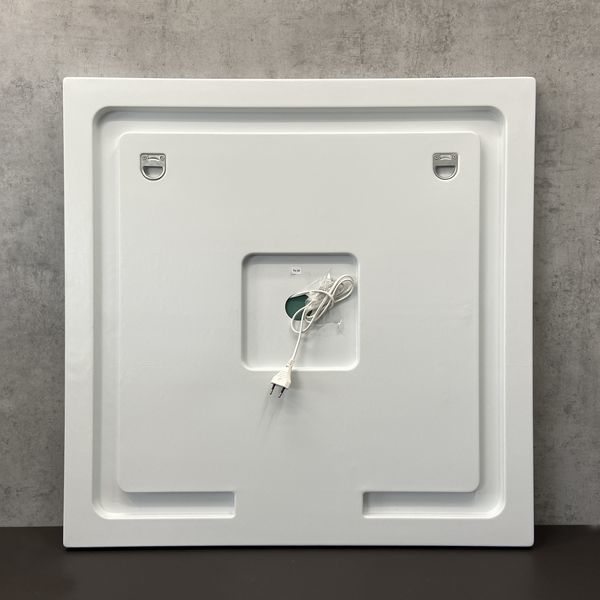 Зеркало Гиацинт 80 Габариты (ШхВхГ): 800*800*30 мм Зеркало оснащено встроенным светодиодным светильником и сенсорной кнопкой включения подсветки. Высококачественное зеркальное полотно с амальгамой на основе серебра. Зеркало для ванной комнаты с проводом длиной 1,3 м. и вилкой подключения в сеть 220 В