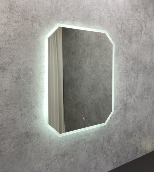 Зеркало Колеус 65 Габариты (ШхВхГ): 650*800*30 мм Зеркало оснащено встроенным светодиодным светильником и сенсорной кнопкой включения подсветки. Высококачественное зеркальное полотно с амальгамой на основе серебра.Октогональное зеркало для ванной комнаты с проводом длиной 1,3 м и вилкой подключения в сеть 220 В