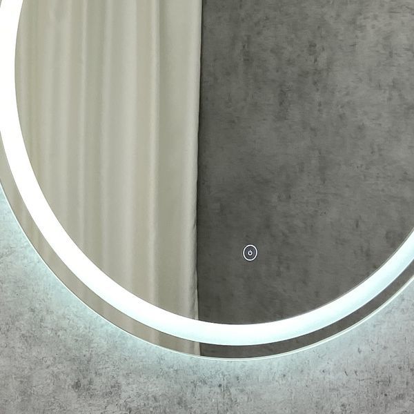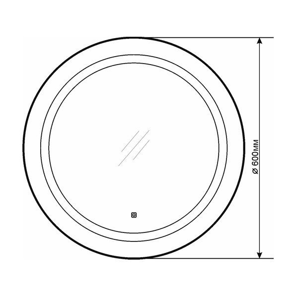 Зеркало Круг 60 Габариты (ШхВхГ): 600*600*40 мм Зеркальное высококачественное полотно с амальгамой на основе серебра. Зеркала оснащены светодиодной подсветкой в виде полосы по окружности полотна, и сенсорным выключателем