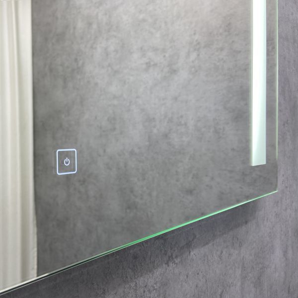 Зеркало Жасмин 85 Габариты (ШхВхГ): 850*650*40 мм Зеркальное высококачественное полотно с амальгамой на основе серебра. Зеркало оснащено светодиодной подсветкой в виде двух вертикальных полос по краям полотна, и сенсорным выключателем