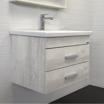 Тумба-умывальник Никосия 70П Варианты цвета корпуса и фасадов: Дуб белый Материал корпуса и фасадов: влагостойкое ЛДСП Габариты (ШхВхГ): 700*550*450 мм Комплектация: керамическая раковина Como 70 (санитарный фарфор) Подвесная тумба с двумя выдвижными ящиками оснащенными системой плавного закрывания. Оригинальные эргономичные металлические ручки.