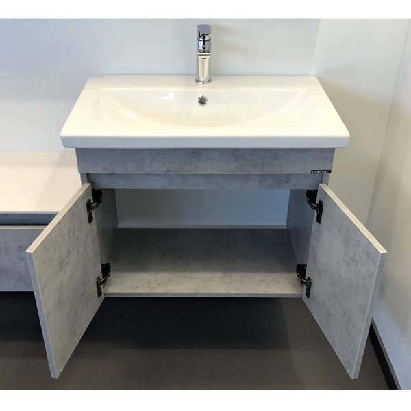 Тумба-умывальник Осло 70ПД Варианты цвета: Бетон светлый Материал корпуса и фасада: влагостойкое ЛДСП Габариты (ШхВхГ): 700*550*450 мм Комплектация: раковина Como 70 (санфарфор) Подвесная тумба-умывальник с двумя распашными створками. Петли створок оснащены механизмами плавного закрывания. Тумба подготовлена для подключения водоснабжения снизу.