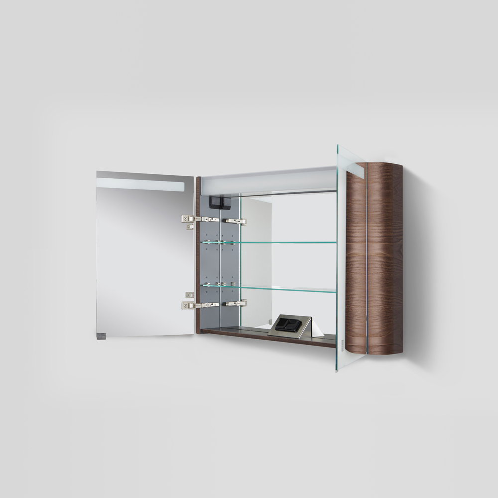 Коллекция шедевров: характерная форма в стиле dynamic organic тщательно проработана и доведена до совершенства в каждом продукте.Особый наиболее эстетически совершенный радиус фасада: ультрамодное и технологически сложное решение которое могут воплотить единицы фабрик.Инновационная LED-подсветка с сенсорным управлением светом с возможностью переключения с теплого на холодный.Двойная функциональность: двойные зеркальные дверцы.